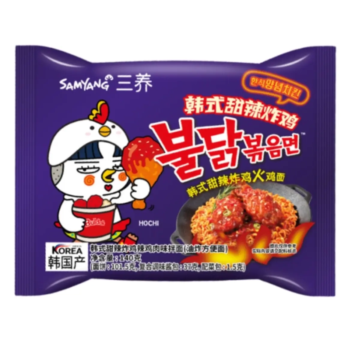 Збалансований смак Локшина Samyang Buldak Sweet and Spicy Chicken Flavour має яскраво виражений смаковий профіль із поєднанням солодких та гострих нот. Смак насичений, із характерним солодкувато-пекучим поєднанням, де початкові солодкі акценти поступово переходять у гостру, «вогняну» нотку, що робить смак одночасно пікантним і збалансованим. Курячі смакові відтінки додають знайомого, ситного аромату, не перевантажуючи загальний профіль. Натуральність і технологія виробництва Samyang застосовує технологію сушки локшини, яка забезпечує пружну структуру волосинок після приготування. Приправа включає суміш спецій, ароматизаторів курятини, соєвих та гострих компонентів (чилі, перець), що створюють характерний «sweet & spicy» профіль. Сам продукт містить суху локшину та окремий пакет із приправою, який додається під час приготування для досягнення максимально вираженого смаку. Універсальність Ця локшина чудово підходить як швидкий перекус або ситний обід, особливо коли хочеться яскравих смакових вражень. Вона добре поєднується із простими додатками: яйцем, сиром, овочами або зеленню — це допомагає пом’якшити гостроту чи посилити текстуру. Також її можна додавати до супів, stir-fry або створювати власні «fusion» страви. Текстура та приготування Локшина швидко готується, зазвичай за 4–5 хвилин у киплячій воді. Після приготування вона зберігає пружну, трохи щільну текстуру, що добре тримає приправу та аромат. Приправа додається або під час варіння, або після зливу води, залежно від інструкції на упаковці, щоб локшина краще наситилась смаком. Рекомендуємо як насичений, солодко-гострий варіант швидкої локшини з яскравим смаком курки — чудовий вибір для тих, хто любить пікантні, інтенсивні смаки та швидкі страви в повсякденному меню.