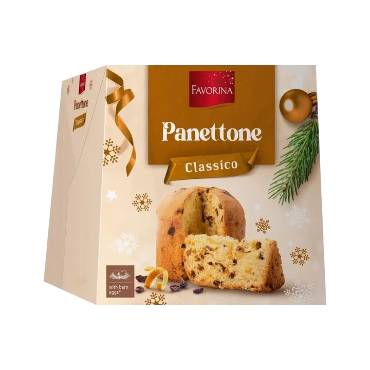 Збалансований смак Панеттоне Favorina Panettone Classico з цукатами та родзинками 1 кг — це класичний італійський святковий кекс із м’яким, повітряним тістом та насиченим, але гармонійним смаком. Солодка, ніжна основа поєднується з соковитими родзинками та ароматними цитрусовими цукатами, які додають фруктової свіжості й легкої кислинки. У смаку відчуваються теплі ванільні та вершкові нотки, що роблять десерт глибоким, але не приторним. Натуральність і технологія виробництва Panettone Favorina виготовляється за традиційною технологією повільного вистоювання тіста, що забезпечує його характерну пористу та ніжну структуру. У складі використовуються пшеничне борошно, яйця, масло, цукор, дріжджі, відбірні родзинки та цукати з апельсинової й лимонної цедри. Завдяки тривалому бродінню тісто набуває легкості, а фруктові додатки рівномірно розподіляються, зберігаючи соковитість і аромат після випікання. Універсальність Цей панеттоне ідеально підходить як центральний десерт до святкового столу, особливо під час різдвяних та новорічних свят. Він чудово смакує з кавою, чаєм, гарячим шоколадом або десертними винами. Також його можна подавати на сніданок чи полуденок, злегка підігрівши або доповнивши вершковим маслом, кремом чи джемом. Зручність споживання Формат 1 кг — це щедра вага, розрахована на родину або компанію гостей. Панеттоне легко нарізається на рівні порційні шматочки та зберігає м’якість протягом тривалого часу. Міцна фірмова упаковка захищає випічку від висихання й робить її зручною для зберігання або подарунка. Рекомендація Панеттоне Favorina Panettone Classico з цукатами та родзинками 1 кг — чудовий вибір для поціновувачів традиційної італійської випічки. Рекомендую як святковий десерт, сімейне частування або подарунок, який створює атмосферу затишку, тепла та справжнього свята з кожним шматочком.