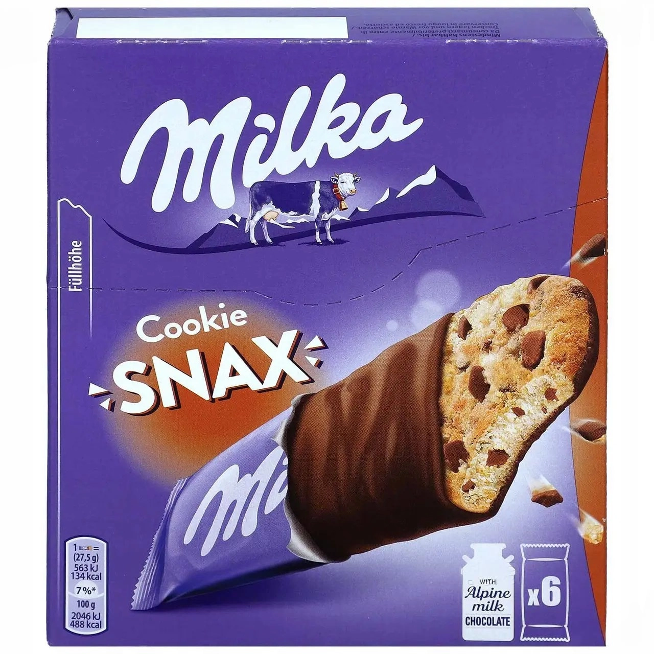 Збалансований смак. Milka Cookie Snax 165 г — це поєднання ніжного пісочного печива з молочним шоколадом Milka та додатковими вкрапленнями хрустких інгредієнтів. Солодкість шоколаду гармонійно врівноважується легким вершковим присмаком тіста, створюючи багатошаровий смак, у якому поєднуються м’якість, ніжність і приємна хрусткість. Натуральність і технологія виробництва. Печиво виготовлене з високоякісного борошна, масла, справжнього альпійського молока та шматочків молочного шоколаду Milka. Ретельно підібрані інгредієнти та сучасна технологія випікання дозволяють зберегти ніжну структуру тіста й водночас додати хрусткі акценти. Універсальність. Milka Cookie Snax ідеально підходить як перекус протягом дня, десерт до чаю або кави чи солодке доповнення до святкового столу. Завдяки багатому складу він смакує як дітям, так і дорослим, а також може стати приємним презентом. Зручність споживання. Формат 165 г зручний як для індивідуального частування, так і для компанії. Печиво легко брати із собою на роботу, навчання чи у подорож, адже воно не кришиться надто сильно й добре зберігає свою структуру. Рекомендація. Milka Cookie Snax 165 г — це солодкий і водночас хрусткий десерт, який стане улюбленим ласощами для поціновувачів шоколаду Milka. Ідеальне поєднання ніжного печива та шоколадних шматочків подарує справжню насолоду у будь-який момент дня.