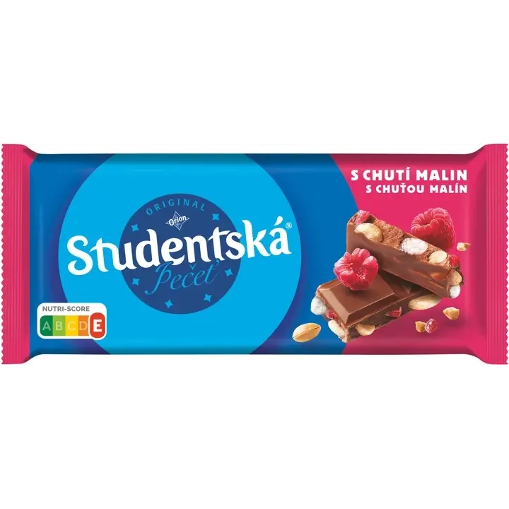 Шоколад Studentska молочна з малиною 170 г — це класична велика плитка ніжного молочного шоколаду з яскравою малиновою свіжістю. Смак солодкий і кремовий від молочного шоколаду (з вираженими нотками какао та молока), доповнений соковитою ягідною кислинкою сушеної/ліофілізованої малини та фруктового желе (мармеладних шматочків). Додають хрусту обсмажений арахіс (близько 10%), а родзинки (іноді присутні в подібних варіаціях) вносять м’яку солодкість і жувальну текстуру. Загальний профіль — збалансований: солодкість шоколаду пом’якшується легкою ягідною кислинкою, без надмірної приторності чи гіркоти. Післясмак приємний, малиновий, з кремовими молочними нотами та легким горіховим відтінком — справжній комфортний солодкий настрій. Натуральність і технологія виробництва Studentska від чеського виробника Orion — це бюджетна, але щедра лінійка шоколаду з великою кількістю начинок. Використовується молочний шоколад на основі цукру, какао-масла, какао-тертого, сухого молока та рослинних жирів. Начинка включає арахіс, сушену малину (або малиновий порошок/шматочки), фруктове желе (на глюкозному сиропі, цукрі, желюючих агентах, лимонній кислоті), іноді родзинки. Без штучних барвників у базовому складі, але присутні емульгатори (соєвий лецитин) та натуральні ароматизатори. Виробництво відповідає європейським стандартам, шоколад не преміальний, але наповнений інгредієнтами щедро — саме за це його обожнюють фанати. Універсальність Ця плитка ідеальна як швидкий солодкий перекус — просто розламайте і насолоджуйтесь поєднанням кремового шоколаду, хрусту горіхів та ягідної свіжості. Чудово пасує до чаю, кави чи молока, як десерт після обіду чи студентський/офісний снек. Можна додавати шматочки в йогурт, морозива, каші чи випічку (як топінг для мафінів чи брауні). Завдяки малиновій кислинці добре поєднується зі свіжими ягодами, сиром чи навіть солоними горішками для солодко-солоного ефекту. Текстура та особливості Плитка поділена на квадратики, кожен шматочок — це молочний шоколад з щедрою начинкою всередині: кремовий, тане в роті шоколад + хрусткий арахіс + м’які/жувальні шматочки малинового желе + ягідні включення. Текстура дуже різноманітна — від гладкого шоколаду до хрусту та жуйкості, що робить кожен шматочок цікавим і не одноманітним. Малинова кислинка розкривається поступово, балансуючи солодкість шоколаду. Зручність використання Упаковка 170 г — великий, щедрий формат для одного-двох днів або для компанії. Плитка в фользі чи пластиковій обгортці, легко ламається по секціях, зручно брати з собою в сумку, рюкзак чи на роботу/навчання. Зберігайте в прохолодному сухому місці (ідеально 16–18 °C, не в холодильнику, щоб уникнути білого нальоту) — шоколад довго тримає смак і текстуру. Рекомендуємо як смачний, щедро наповнений молочний шоколад з яскравою малиновою ноткою, арахісом та желейними шматочками — справжній хіт для любителів ягідних смаків, хрустких текстур і солодкого комфорту. Ідеальний вибір для студентів, підлітків, офісних перекусів чи просто для тих, хто хоче яскравий, різноманітний шоколад без зайвої серйозності — один шматочок, і настрій одразу кращий!