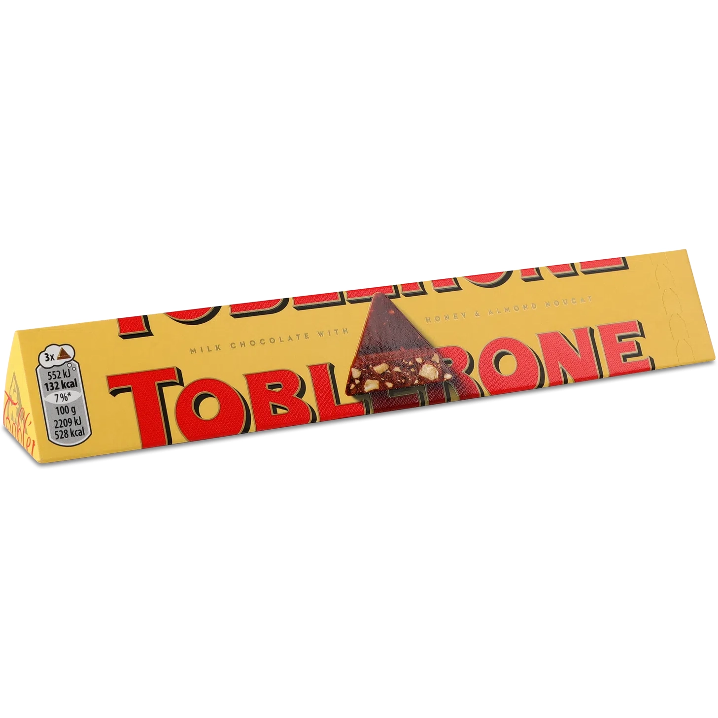 Легендарна класика у трикутному форматі Шоколад Toblerone молочний з нугою з меду та мигдалю 100 г — це вишуканий зразок швейцарського мистецтва шоколаду, який поєднує ніжний молочний шоколад, ароматну медову нугу та хрусткі шматочки мигдалю. Його впізнавана трикутна форма, натхненна величними вершинами Альп, стала справжнім символом преміальної якості та автентичності бренду. Досконала гармонія смаку та текстури Кожен трикутник цієї плитки відкриває насичену палітру смаків: спочатку ніжність молочного шоколаду, потім солодкий відтінок меду та делікатна хрумкість мигдалю. Нуга надає м’якої карамельної структури, створюючи неповторний баланс між солодким і горіховим, який тане на язиці та залишає довгий післясмак. Традиційна швейцарська якість і натуральні інгредієнти Toblerone виготовляється зі справжнього швейцарського молока, відібраних какао-бобів і натуральних компонентів без штучних ароматизаторів чи барвників. Рецепт залишається незмінним із моменту створення у 1908 році — це гарантія стабільного смаку, перевіреного часом, і якості, що відповідає високим швейцарським стандартам. Ідеальний супровід до будь-якої миті Цей шоколад чудово поєднується з кавою, чаєм або вином, розкриваючи різні грані смаку залежно від напою. Його зручно брати з собою у подорож, на роботу чи насолоджуватися вдома. Трикутна форма дозволяє легко відламувати шматочки — для себе або щоб поділитися з близькими. Символ солодкої насолоди зі столітньою історією Toblerone — не просто шоколад, а легенда, що уособлює швейцарську досконалість і любов до деталей. Молочний варіант із нугою з меду та мигдалю — це класика, яка ніколи не виходить із моди. Рекомендуємо поціновувачам справжнього європейського шоколаду з глибоким, насиченим смаком і впізнаваною формою, яка робить кожен шматочок особливим.
