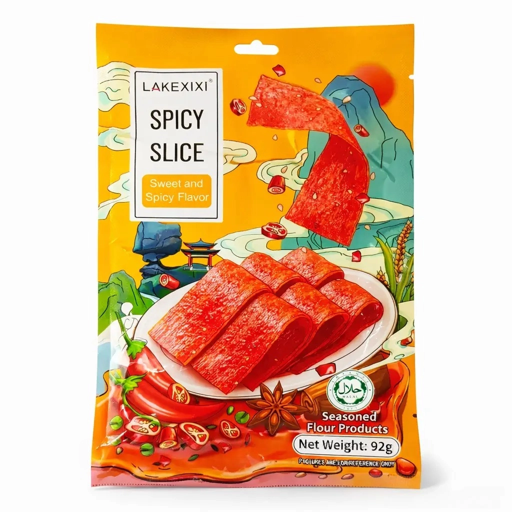 Збалансований смак Снек має виражений солодко-гострий смаковий профіль із нотами перцю чилі, соєвих спецій та легкою карамельною солодкістю. Гострота розкривається поступово, поєднуючись із солоністю та пряністю. Формат тонких слайсів дозволяє приправам рівномірно покривати поверхню, тому кожен шматочок має насичений і збалансований смак. Натуральність і технологія виробництва Основою продукту є пшеничний білок або борошно з додаванням рослинної олії, спецій, соєвого соусу та цукру. Суміш проходить екструзійну обробку, після чого слайси просочуються ароматною приправою. Така технологія формує характерну щільну й злегка жувальну структуру латяо та забезпечує рівномірний розподіл смаку. Універсальність Солодко-гострий смак робить цей снек універсальним перекусом. Його можна вживати самостійно або використовувати як пікантне доповнення до рису, локшини чи інших азійських страв. Завдяки насиченому смаку він добре підходить для сетів закусок, перегляду фільмів або швидкого перекусу протягом дня. Зручність споживання Формат тонких слайсів зручний для швидкого перекусу без додаткової підготовки. Компактна упаковка легко поміщається в сумці, а щільна текстура дозволяє продукту зберігати форму та не кришитися під час споживання. Термін зберігання до 12 місяців робить його зручним для тривалого зберігання. Рекомендація Снек Latiao Spicy Slice Sweet and Spicy 92 г — чудовий вибір для тих, хто любить солодко-гострі азійські закуски з насиченим смаком і незвичною жувальною текстурою. Рекомендуємо як пікантний перекус для різноманіття смаків.